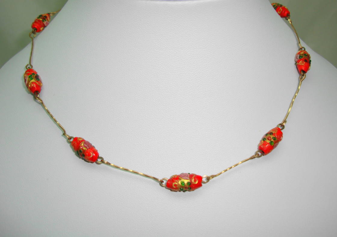 We are pleased to offer this fabulous vintage 1930s Art Deco red venetian glass wedding cake bead rolled gold link necklace which is just so pretty.  As you can see from the photos, the necklace is in excellent condition, looks really lovely on, a great vintage piece!