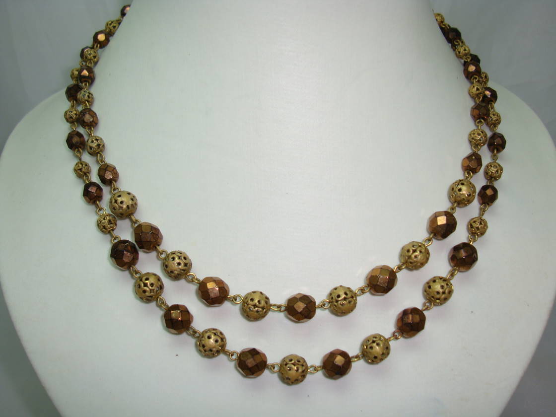 1950s 2 Row Gold Glass & Filigree Gold Bead Necklace