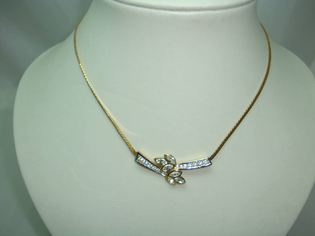 1950s Attwood & Sawyer Diamante Floral Gold Necklace