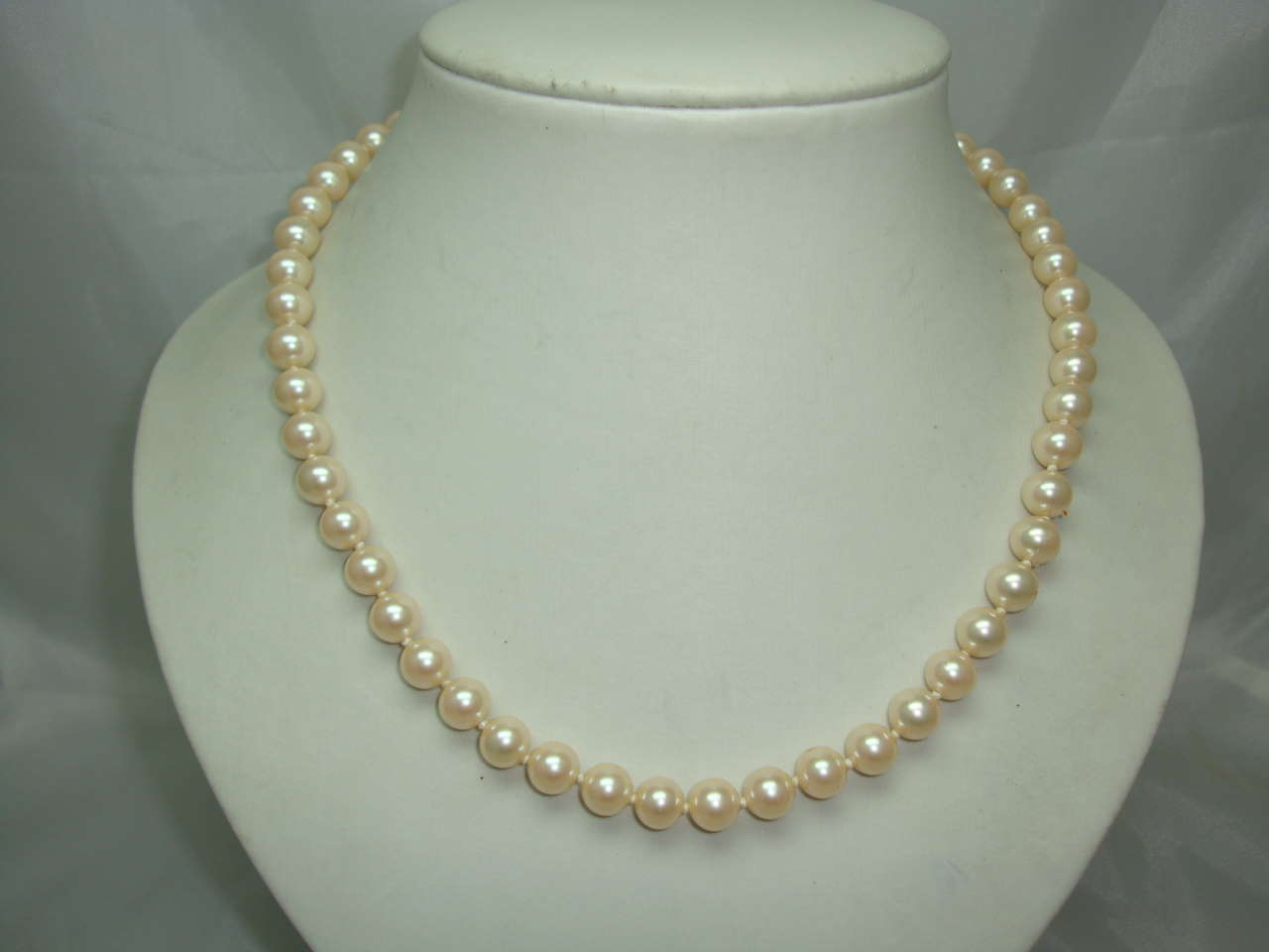 Fabulous vintage 1950s quality glass simulated hand knotted glass pearl bead necklace with a beautiful goldtone clasp.  As you can see from the photos, this is a quality vintage necklace in excellent condition - the necklace has a good weight to it - it is a very good quality simulated pearl necklace - looks like the real thing! Great lustre and sheen.