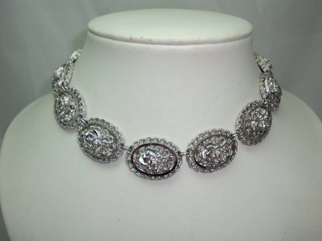We are pleased to offer this fabulous vintage 1960s fabulous textured silvertone sparkle flower link necklace which is just stunning.  Excellent vintage condition, a really weighty piece which is very well made, the number 50 is stamped on each link on the reverse - this is probably an unsigned Jewelcraft piece.