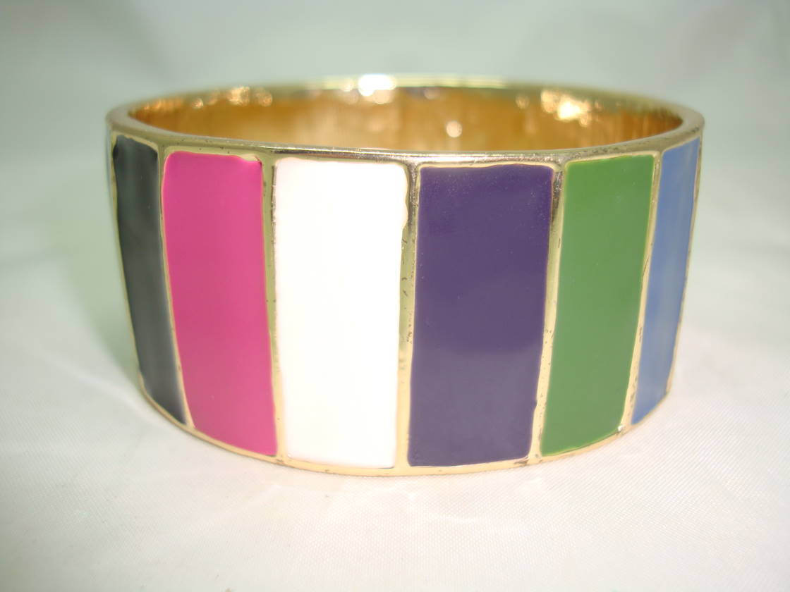 Vintage 1980s heavy multicoloured striped design enamel wide goldtone bangle which is just fab.  Excellent condition, really great quality, looks super on, this bangle has a really good weight to it, looks stunning on.