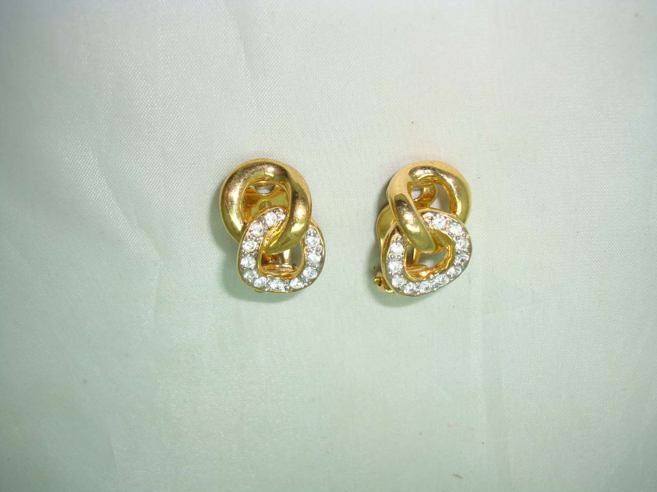 Lovely pair of vintage 1980s chain link style diamante goldtone clip on earrings which are in excellent condition.  Looks very pretty on, loads of sparkle and shine from the diamante stones, looks like the real thing!