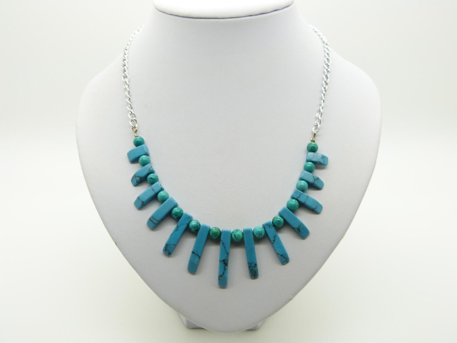 Attractive Eyecatching Real Turquoise Bead Necklace on Silvertone Chain