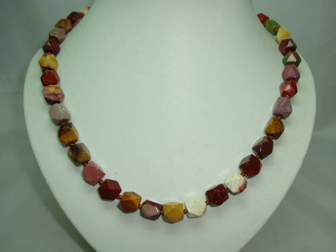 We are pleased to offer this beautiful colourful natural agate stone faceted bead necklace which is hand knotted.  Fastens with lobster claw clasp with 1 ½ extender chain for extra length.  The beads are beautifully faceted and are very tactile to touch.  There are some imperfections on some of the beads but that is the nature of natural stones.  Lovely mix of colours on this necklace, looks very pretty on.