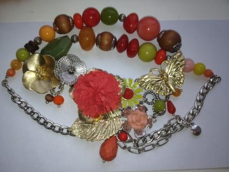 Designer Signed Bohm Colourful Flower and Butterfly Statement Necklace 62cm