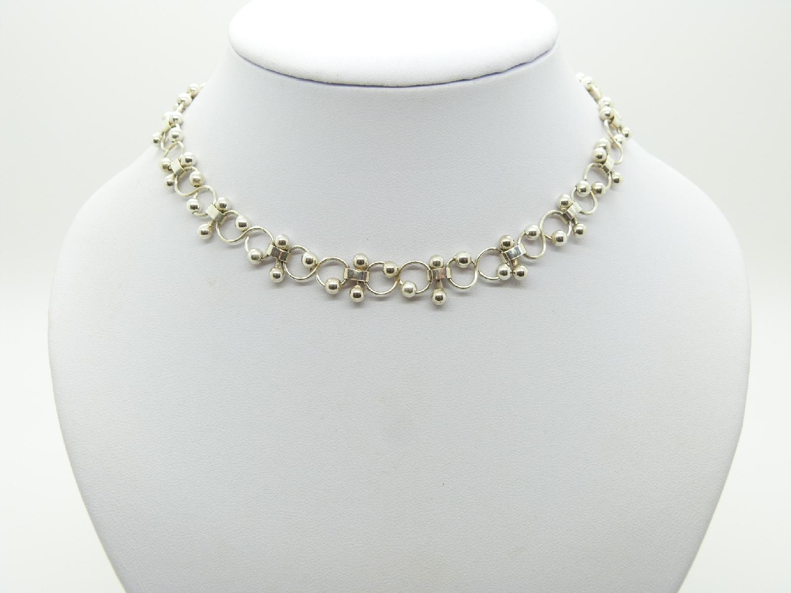 Pretty and Delicate Silver Plated Fancy Link Choker Necklace 39cms