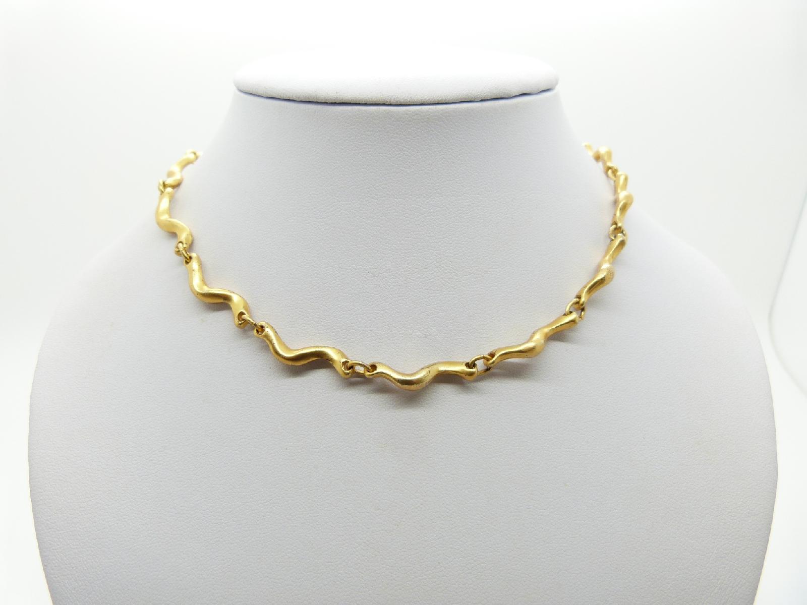 Signed Dyrberg Kern Fancy Wavy Link Goldtone Designer Necklace