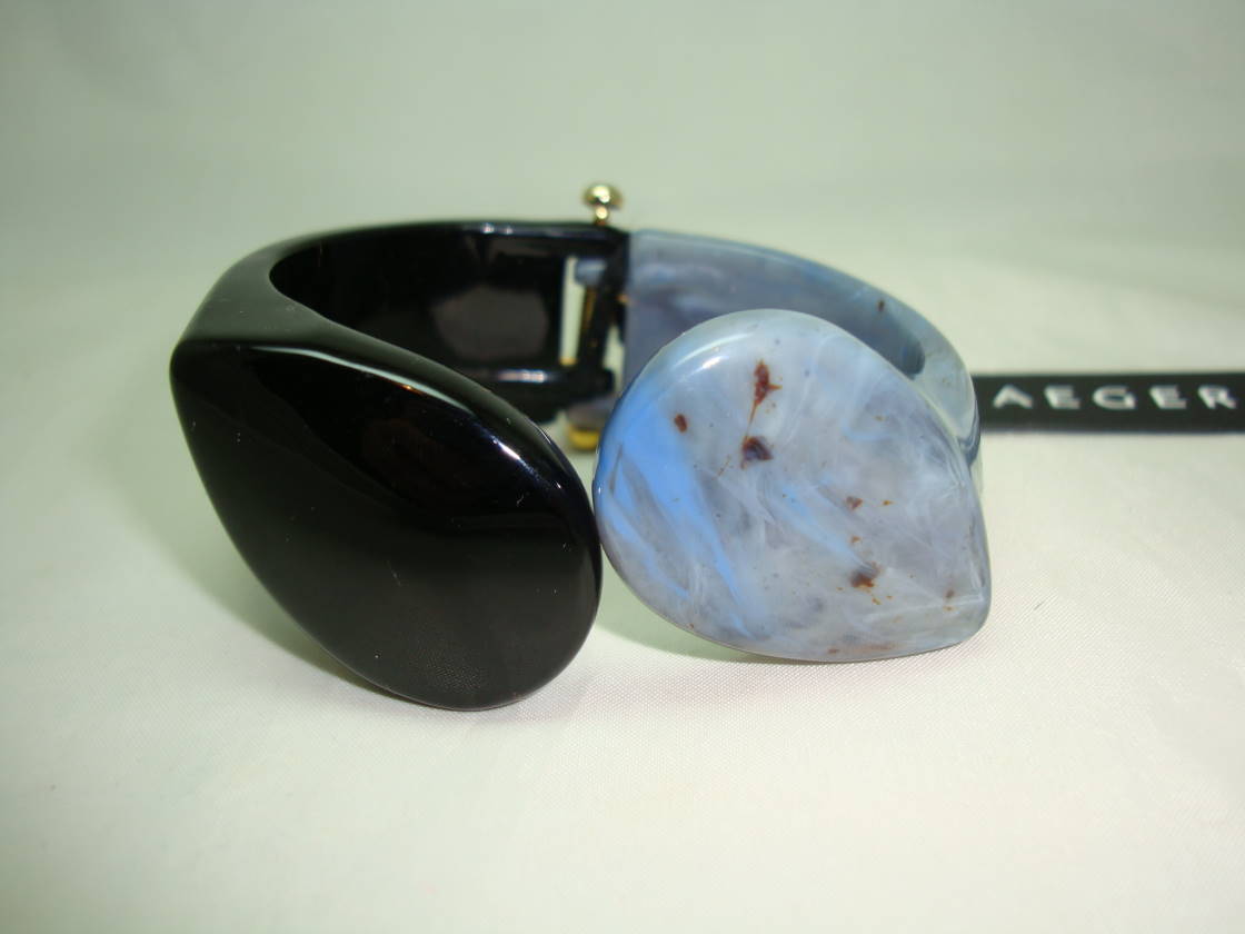 Very stylish Jaeger black and mottled grey lucite/acrylic clamper bangle bracelet which is just stunning.  Mint condition as item is new with tags - a really classy and modern of piece of jewellery with a twist from Jaeger - very well made and just so easy to wear, will go with absolutely anything, a classic!