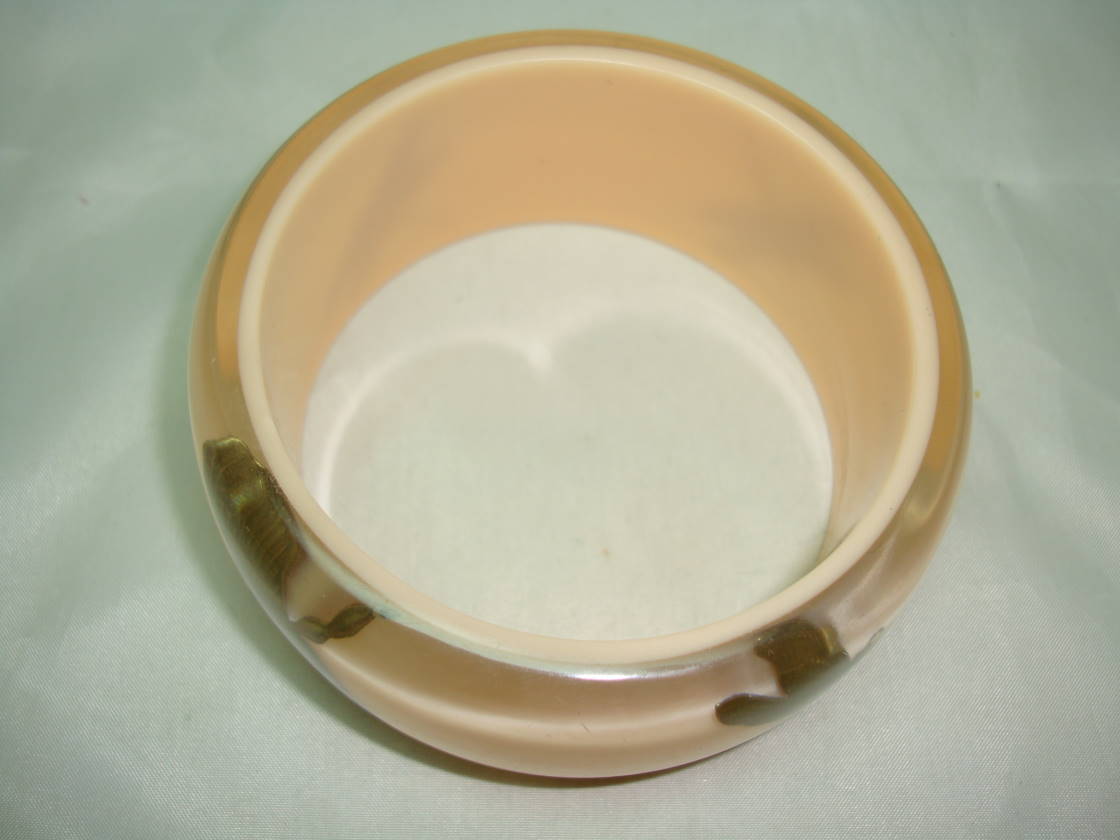 Unusual Wide Chunky Nude Coloured Lucite Gold Dragonfly Arm Bangle