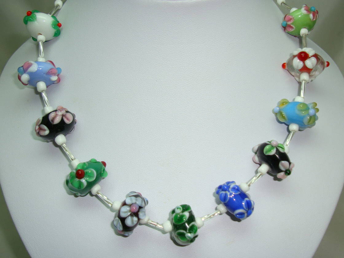 Very Pretty Multicoloured Large Wedding Cake Glass Bead Necklace Stunning