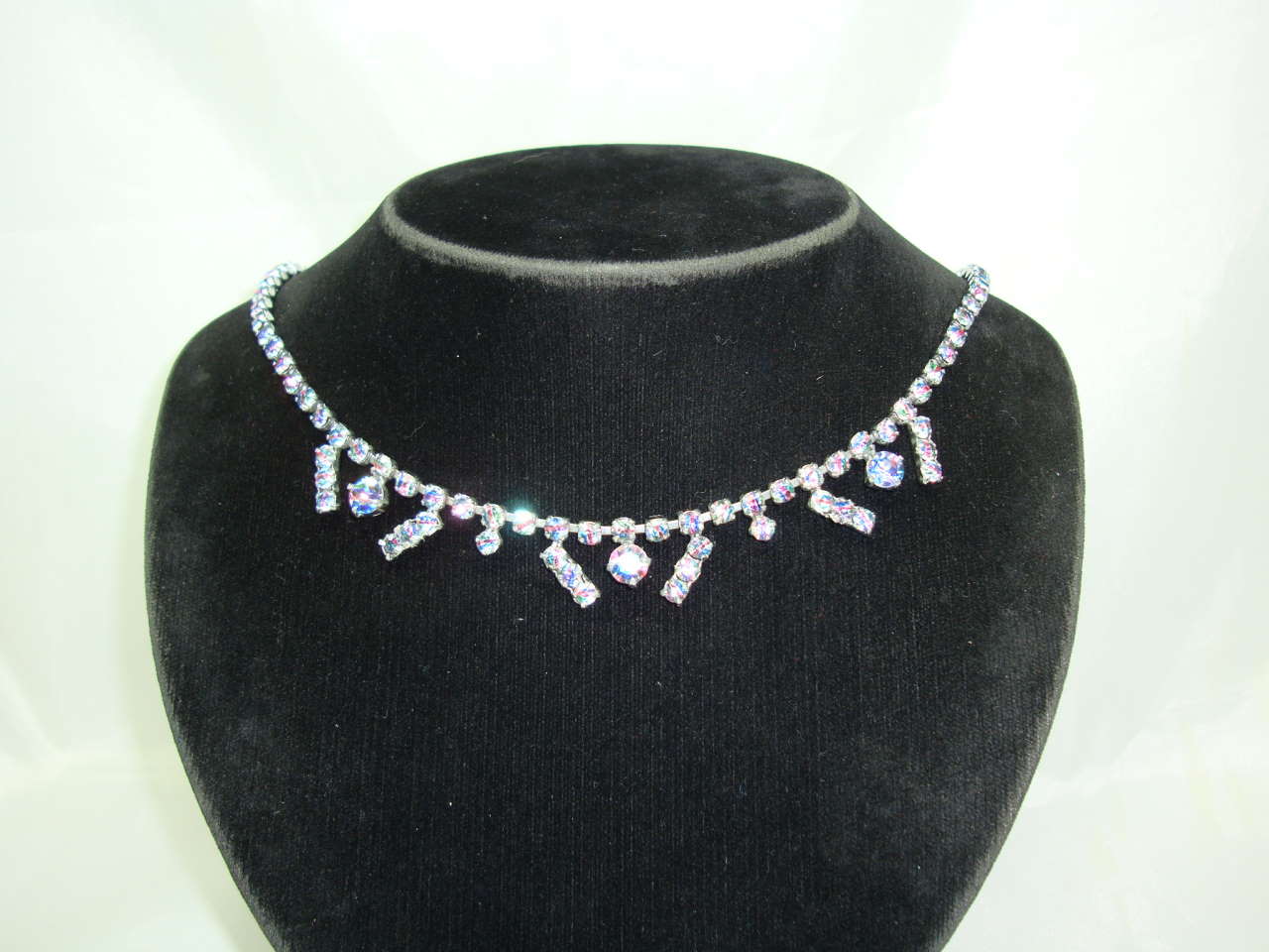 Vintage 1950s Sparkling AB Rhinestone Diamante Drop Necklace Pretty!