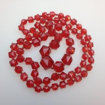 Vintage 30s Long Red Crystal Glass Bead Necklace Stunning Quality!