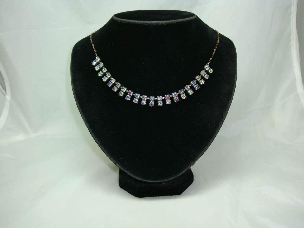 Vintage 30s Sparkling Double Row AB Rhinestone Diamante Necklace