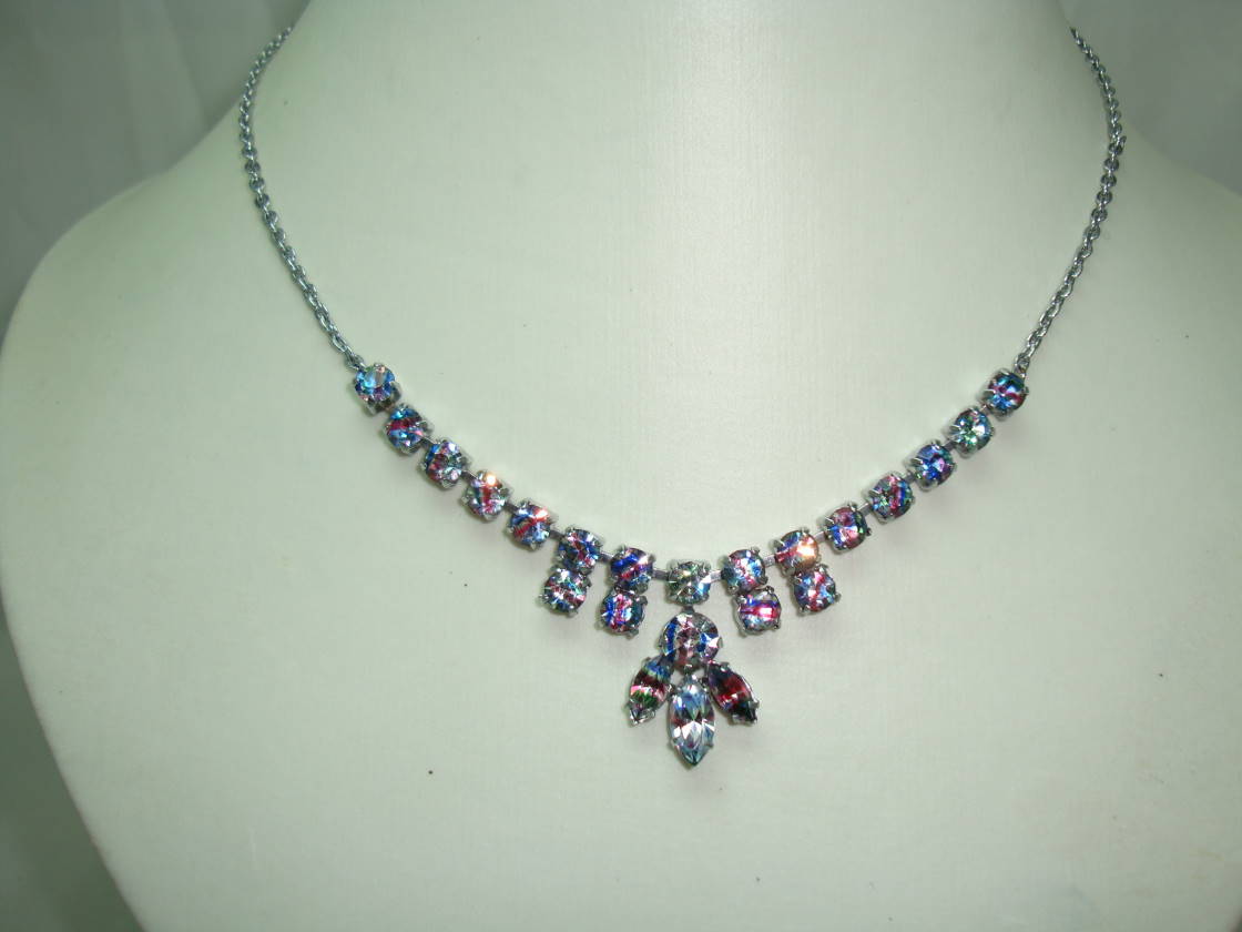 Vintage 30s Sparkling Rhinestone Diamante Drop Necklace