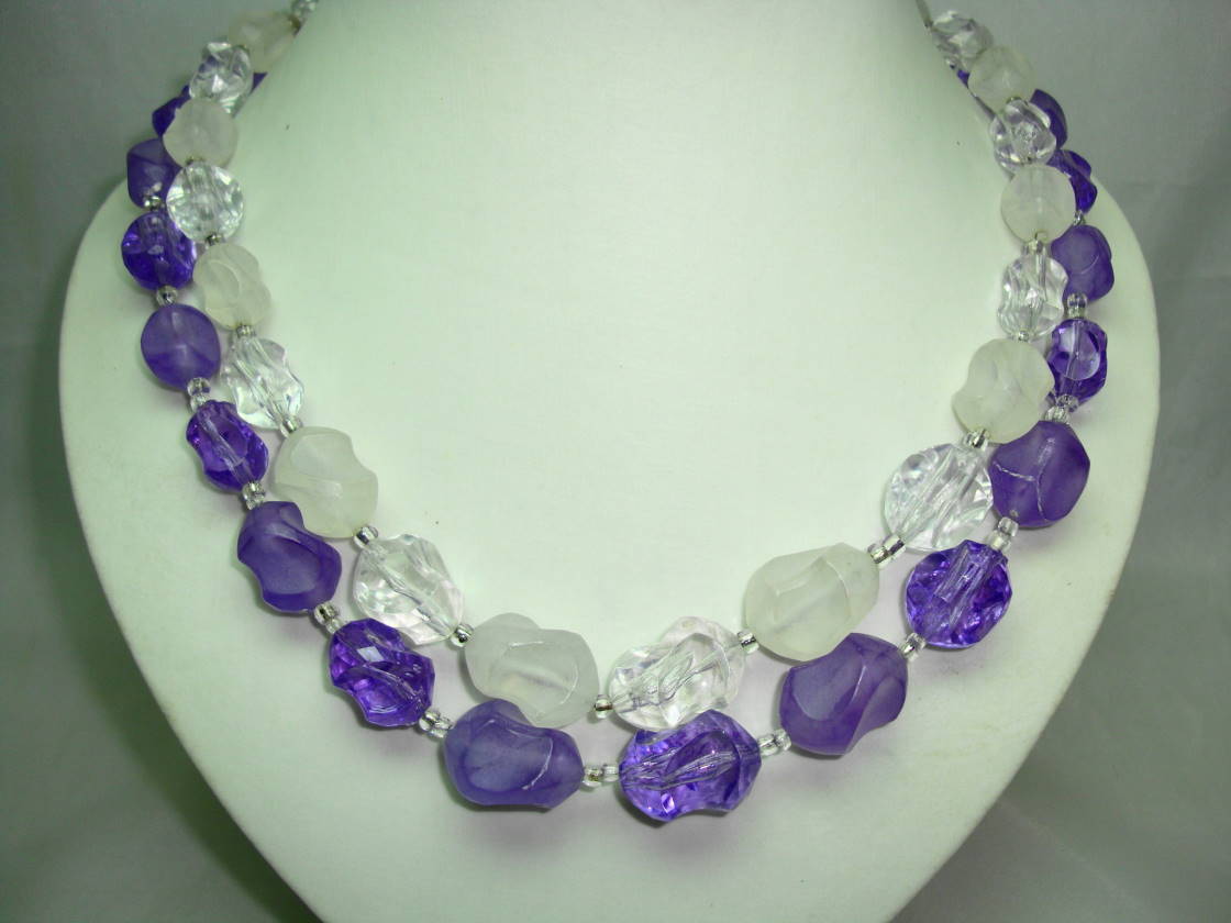 Vintage 50s 2 Row Purple & Clear Lucite Bead Necklace