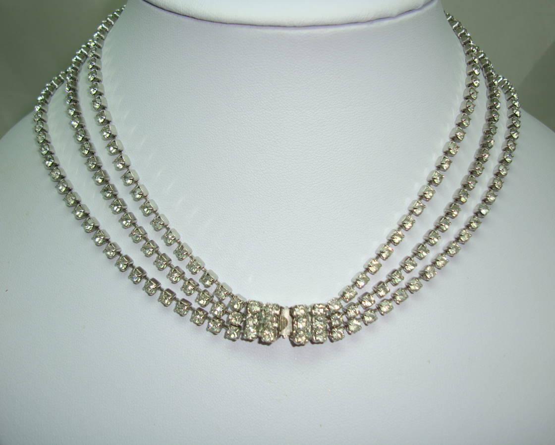 Vintage 50s Amazing 3 Row Graduating Sparkling Diamante Necklace