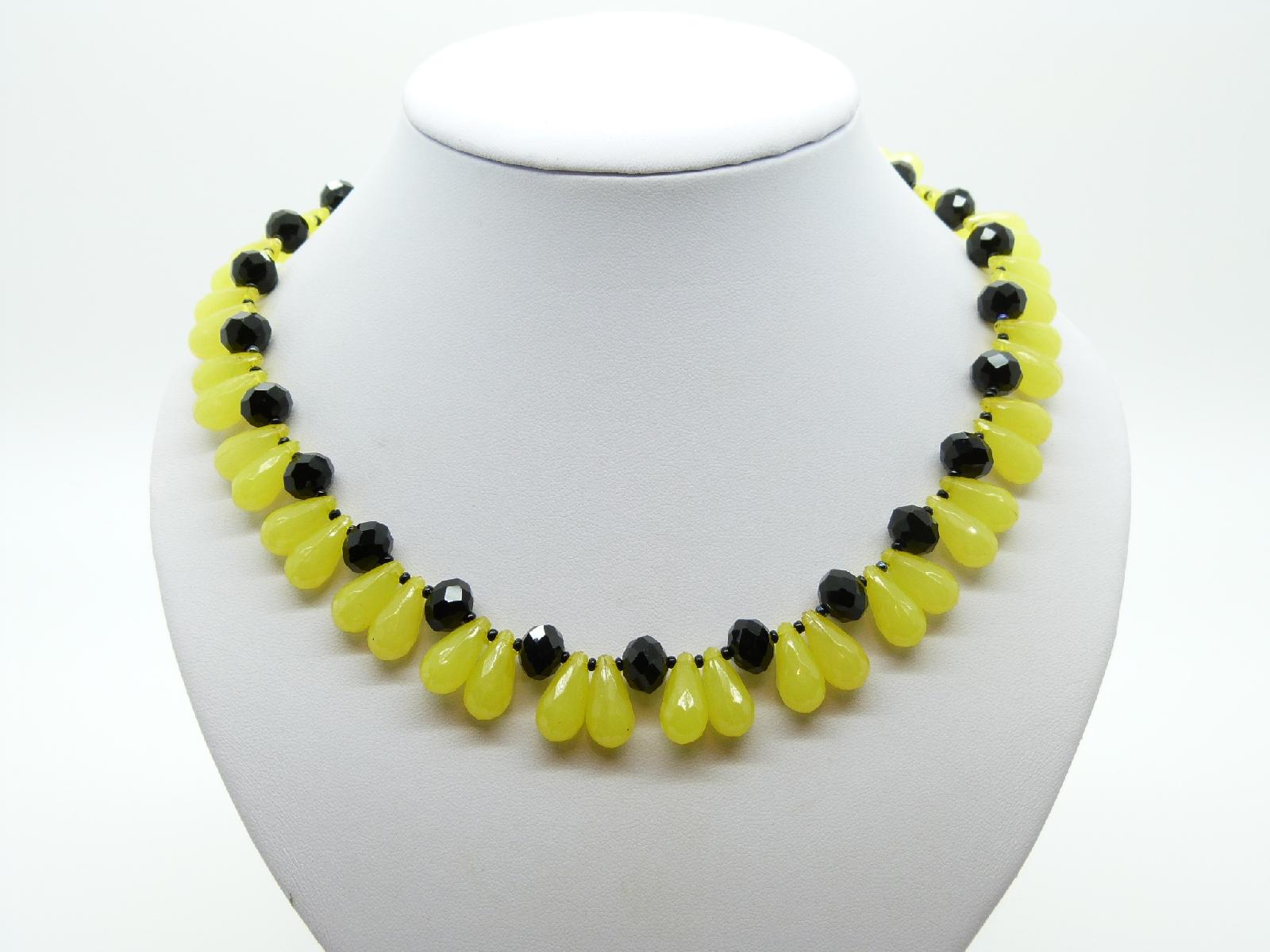 Fabulous vintage 1950s necklace made of of black glass faceted beads interspersed yellow teardrop shaped beads.  Very attractive and unusual, excellent condition, looks stunning on, measures 49cms in length.