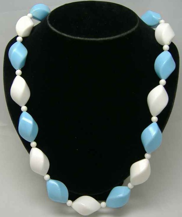 Vintage 50s Blue & White Chunky Twist Bead Necklace WOW