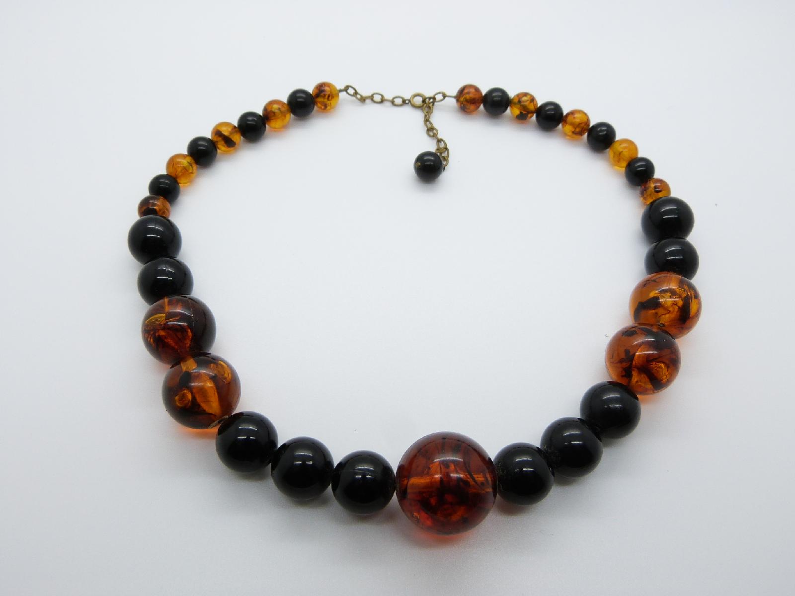 Vintage 50s Chunky Black and Amber Coloured Plastic Lucite Bead Necklace