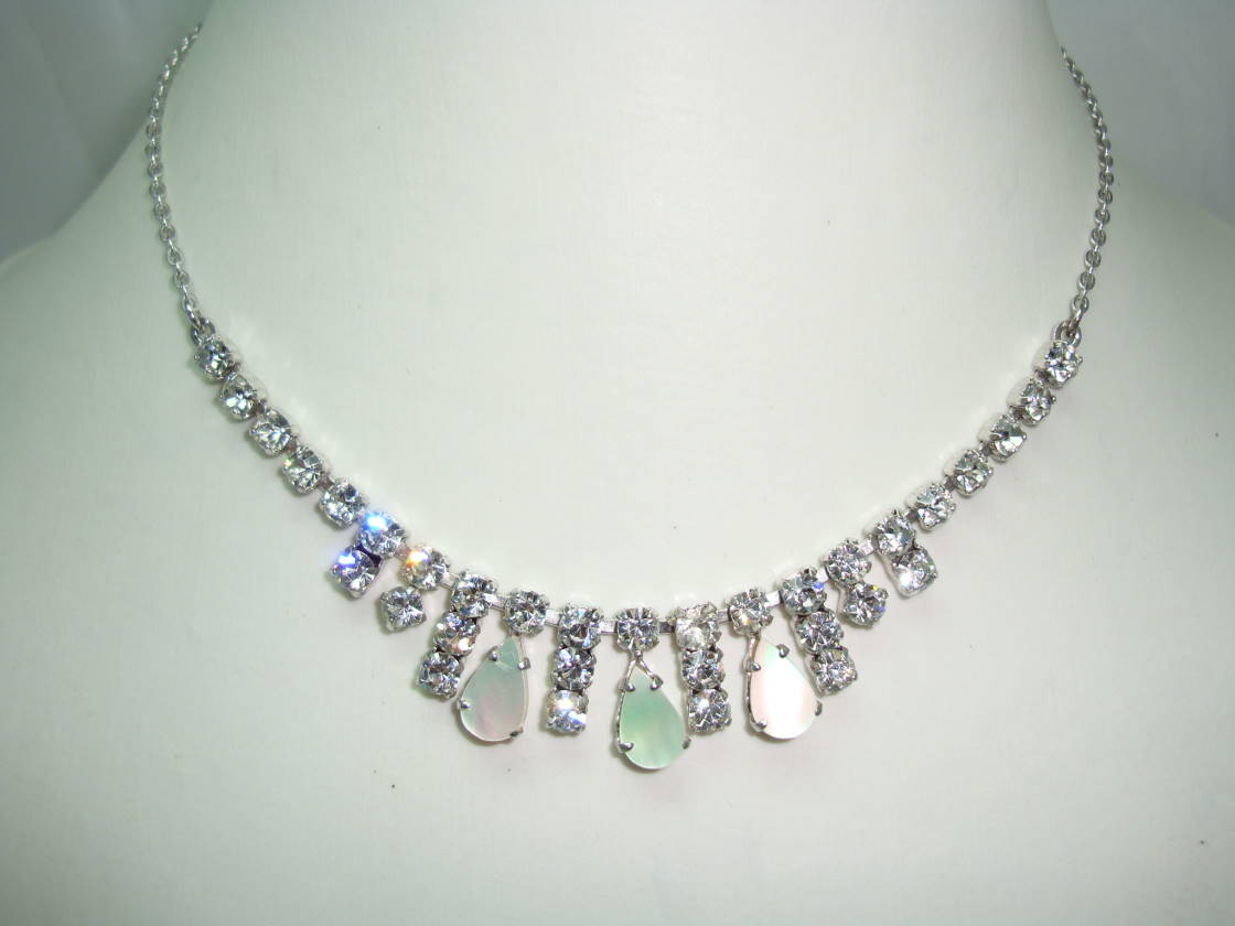 Vintage 50s Diamante & Mother of Pearl Drop Necklace