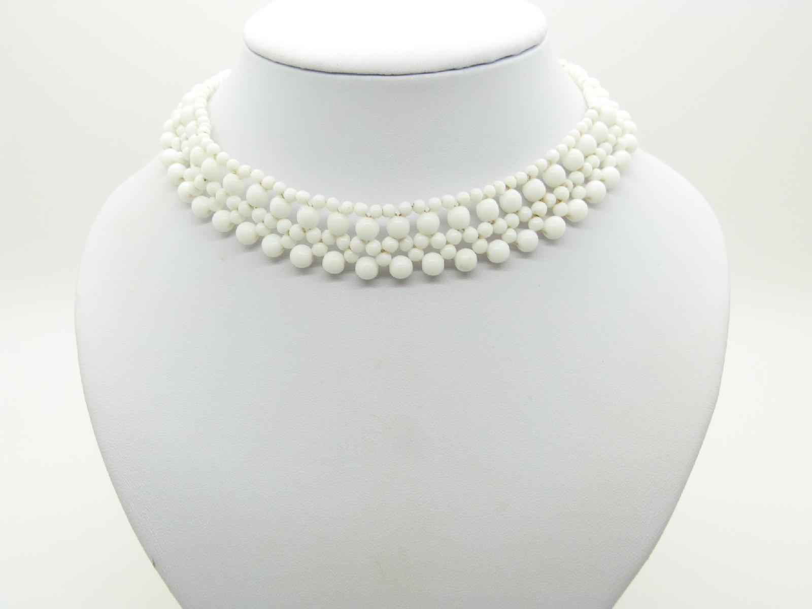 Vintage 50s pretty white glass bead choker necklace, excellent condition, measures 37cms.