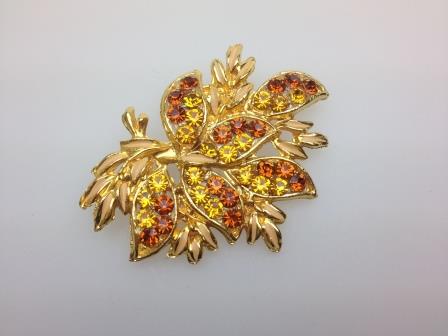 Vintage 50s Quality Goldtone Amber Tones Diamante Floral Design Brooch 7cms