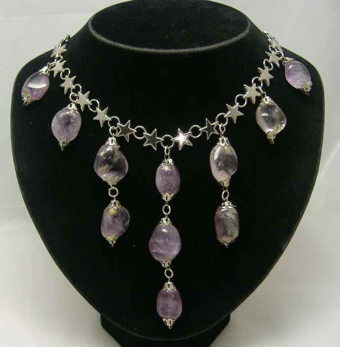 Fabulous vintage 1950s real amethyst polished stones which have been taken from a 50s necklace and secured onto this fabulous silvertone star chain which is just stunning.  Excellent condition, looks absolutely fabulous on, a real staement piece!
