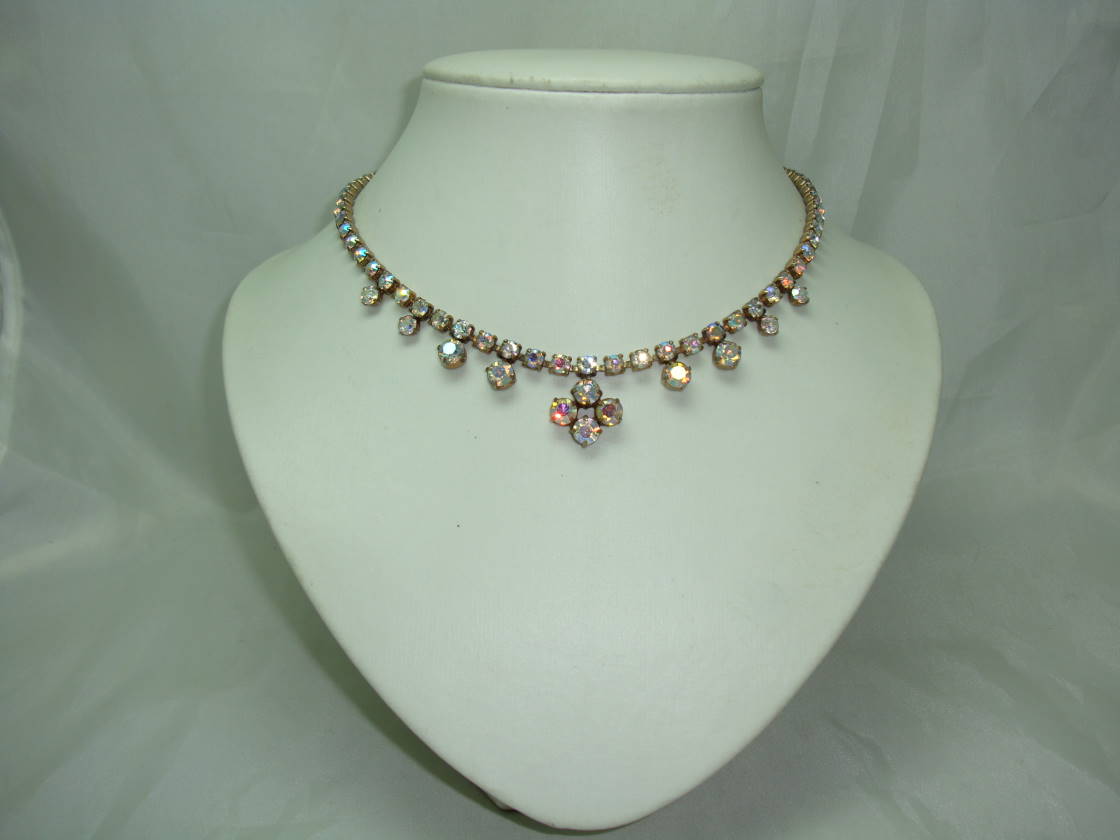 Lovely vintage 1950s sparkling ab diamante flower drop necklace which is just fab.  Excellent vintage condition, great quality, looks fabulous on!