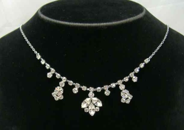 Vintage 50s Sparkling Diamante Flower Necklace on Chain
