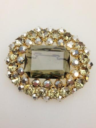 Vintage 50s Stunning Large Green Diamante Goldtone Brooch 5cms