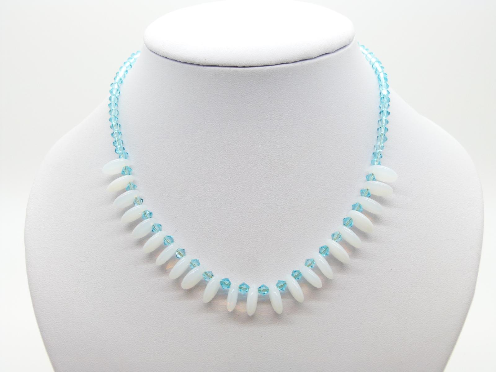 Vintage 50s Turquoise Blue Glass and Opaline Glass Drop Bead Necklace Fab!