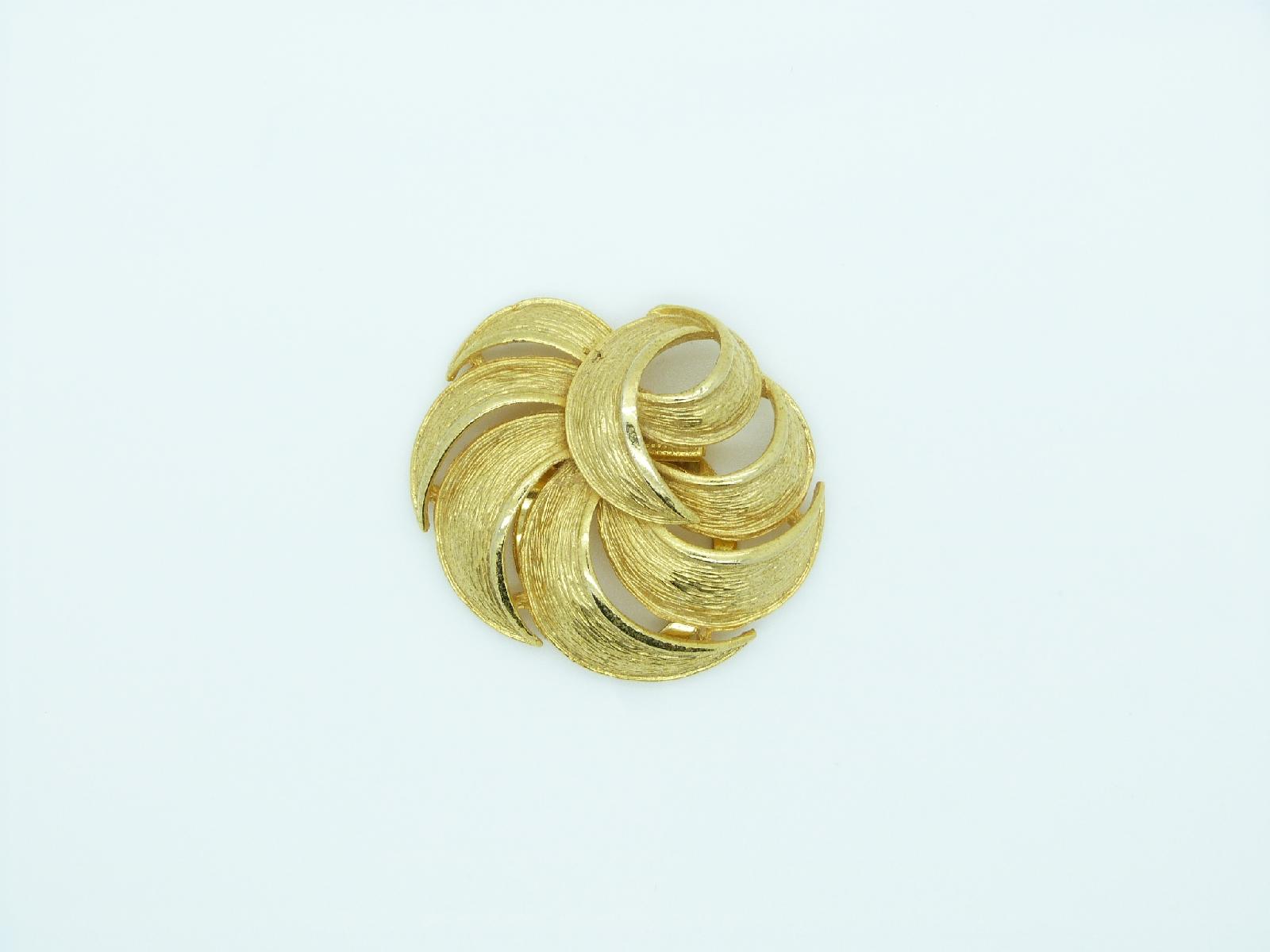 Vintage 60s Large Goldtone Textured Swirl Effect Scarf Clip 5cms
