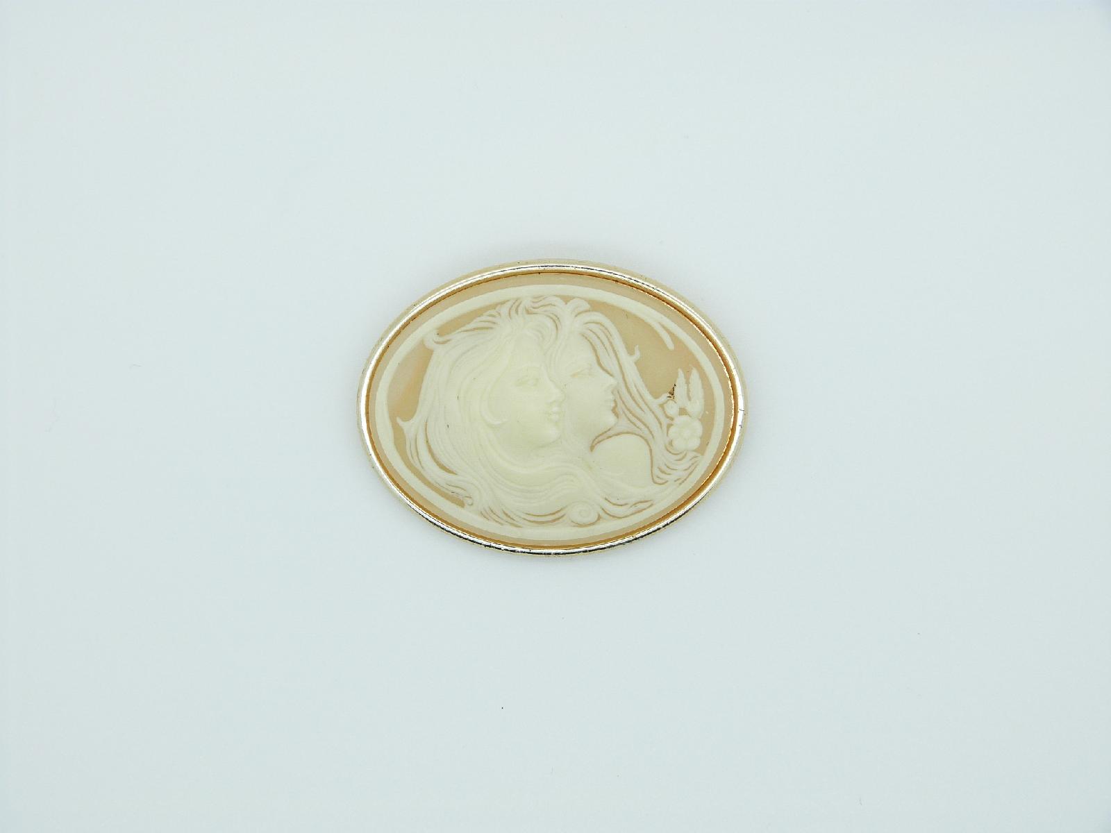 Vintage 70s very unusual large lucite/plastic cameo brooch depicting two beautiful young girls raised faces in a neo classical style, excellent condition, roll over pin fastener, a really eye catching attractive brooch, measures 6.5cms in length.