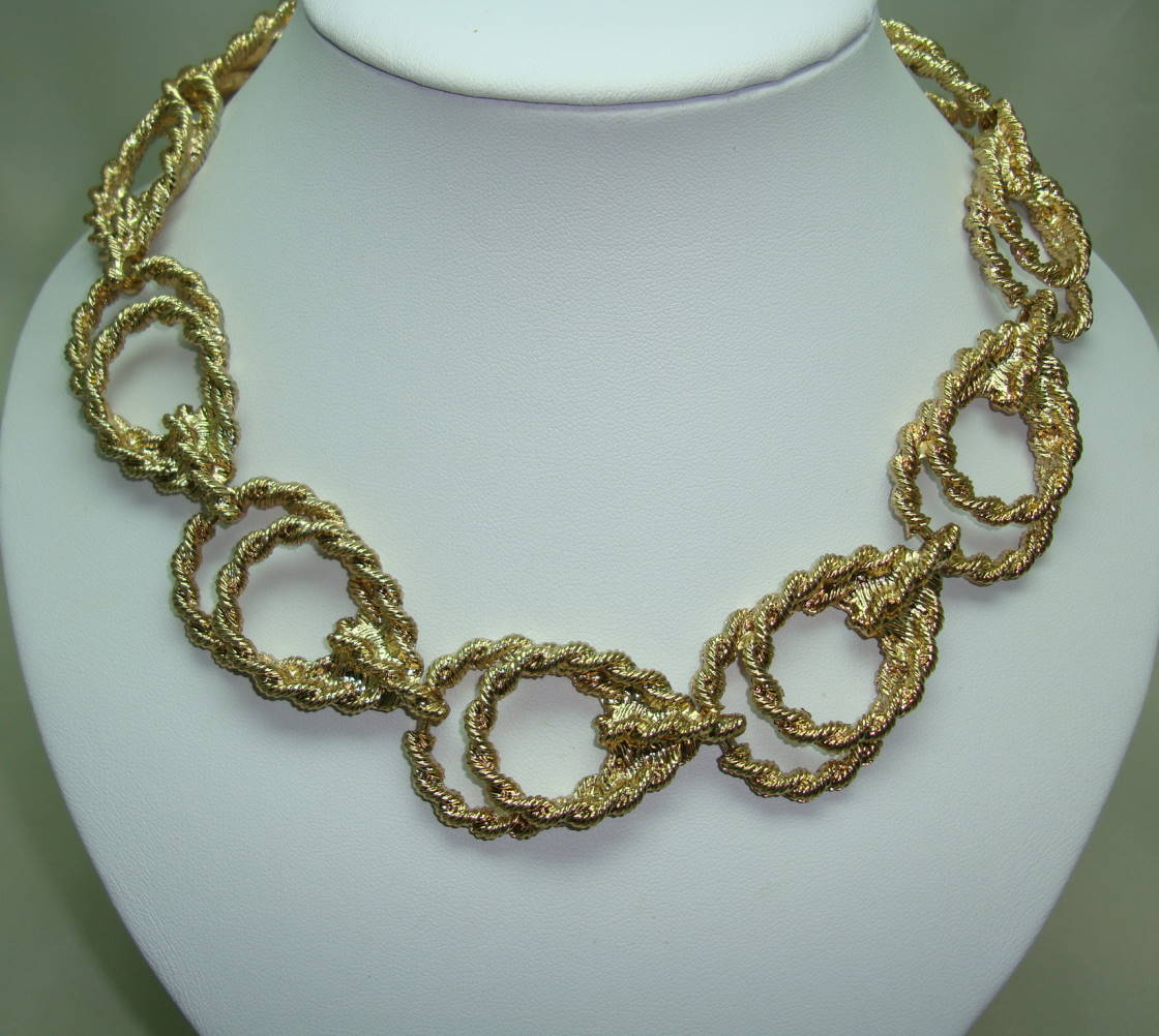 We are pleased to offer this fabulous vintage 1960s chunky fancy double link textured goldtone statement necklace which is just stunning.  Excellent vintage condition, looks really stunning on, a real statement piece.  Very well made, a really good weight to this one as well. looks very designer in design and quality.  This really is a piece that is very versatile, wear with a little black dress, jeans and a crisp white shirt or anything else that you may fancy, will go with absolutely anything.