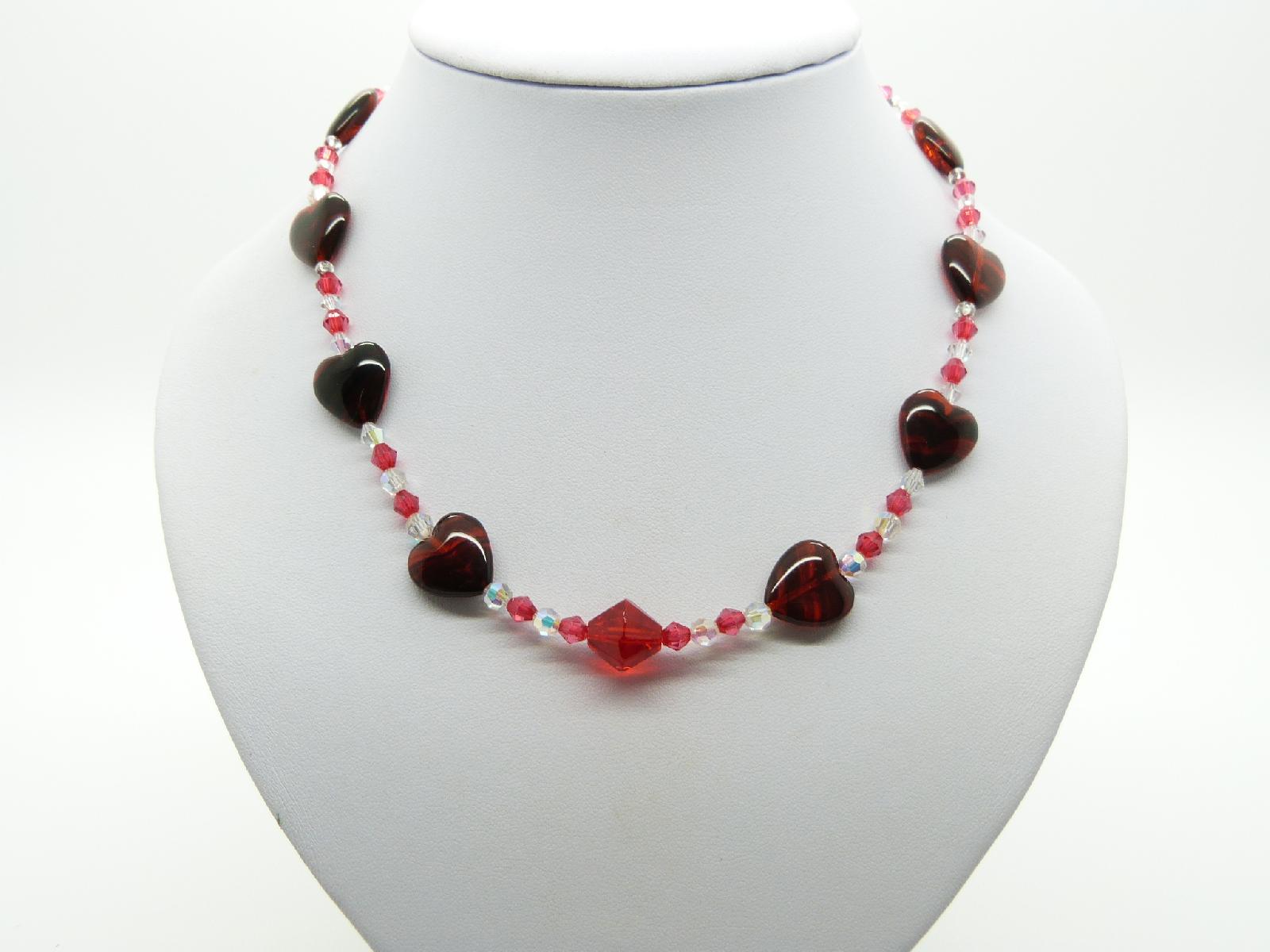 Vintage Redesigned Red and Clear Crystal Glass Red Heart Bead Necklace