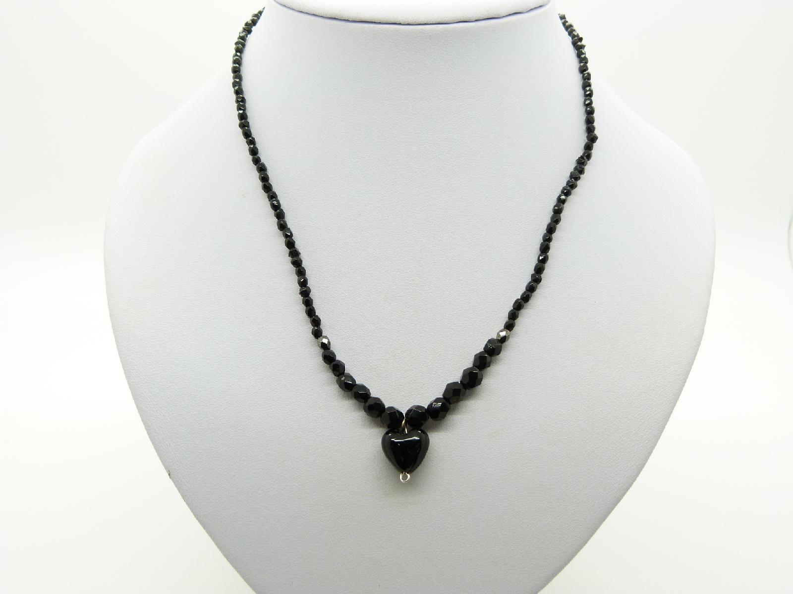 Vintage redesigned necklace made up of black crystal glass beads and decorated with a black glass heart pendant, one off unique design, measures 44cms.